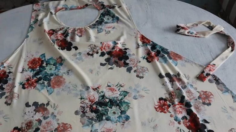 Вырезать четыре пояска из той же ткани для завязок сзади. Пришить к платью.
