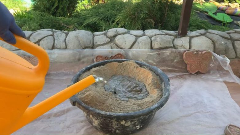 Из цемента и песка 1:2 + воды замесить раствор, не слишком густой и не слишком жидкий.
