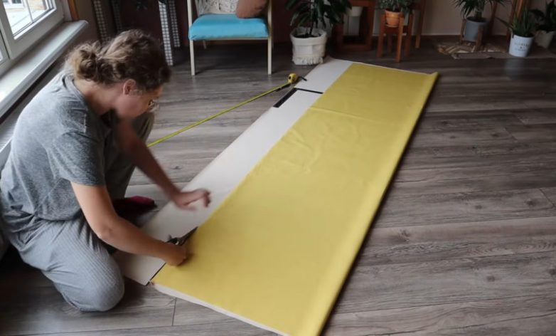 Промажьте верхнюю часть липучки клеем и наложите сверху нижнюю часть полотна. Хорошо прогладьте часть с липучкой руками и аккуратно снимите верхнюю часть липучки. Благодаря клею вторая часть липучки останется на нижней части полотна именно на том месте, на котором ее необходимо пришить, чтобы получить аккуратный и ровный чехол для кресла.