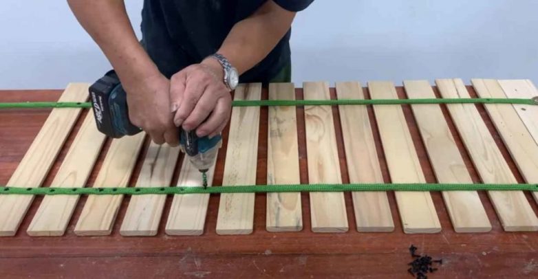Теперь необходимо будет сделать из ремней и досок два полотна.