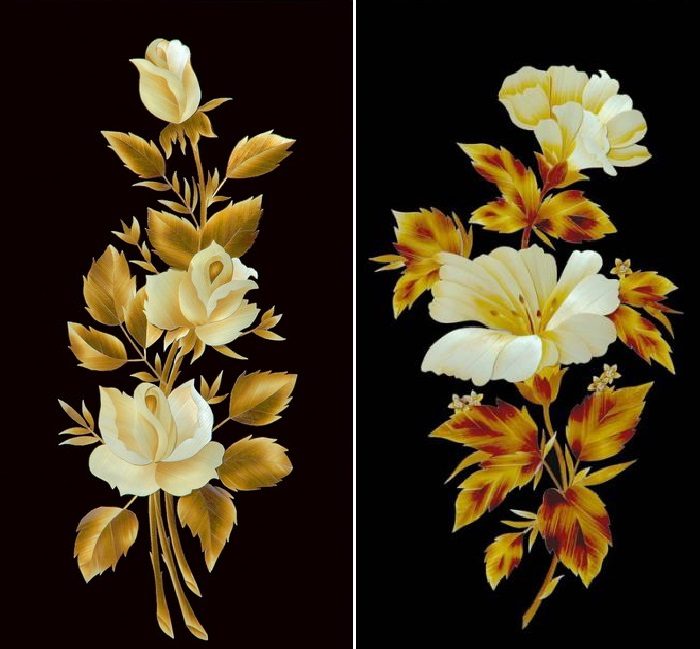 Самые ранние образцы изделий, инкрустированных соломкой, относятся к XVIII веку. Народные умельцы украшали соломкой шкатулки, табакерки, пасхальные яйца. Для инкрустации мастера чаще всего использовали ржаную соломку, которую нарезали квадратиками, ромбиками или полосками, а затем наклеивая на поверхность создавали геометрические орнаменты. Кстати, современные мастера также немало внимания уделяют этой специфической технике украшения изделий из дерева соломкой.