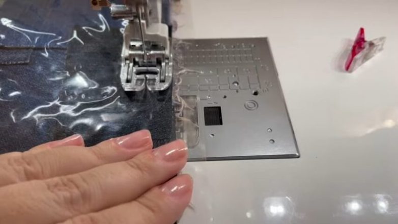 Прикладываем плёнку и на машинке прострачиваем сначала по вертикали, потом — по горизонтали.