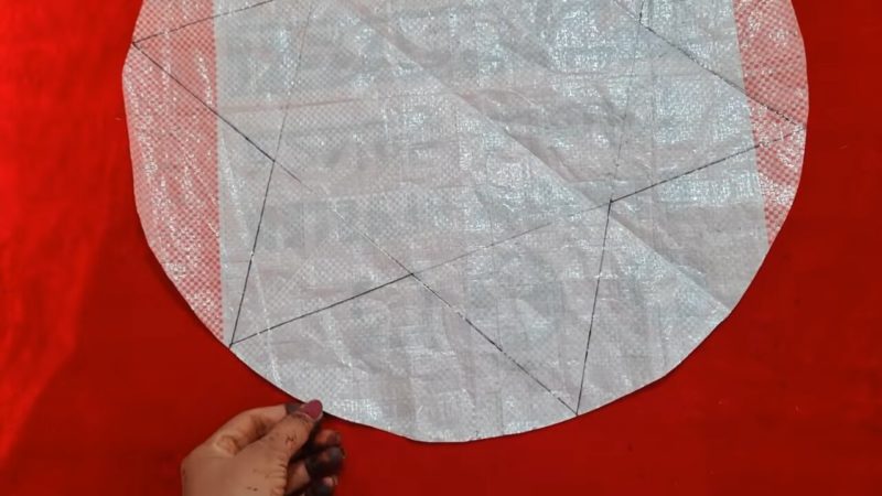 Для этой идеи пригодятся все маленькие лоскутки ткани, которые остались от предыдущих швейных работ. Для основы можно вырезать круг из плотного пакета или мешковины. Также можно взять и плотную ткань.