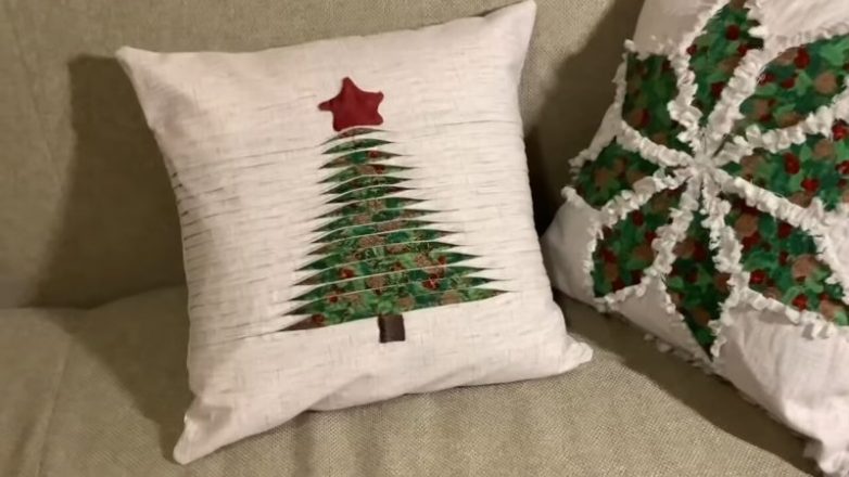 Подробнее о создании дизайнерской подушки в стиле пэчворк с новогодней ёлкой смотрите в видео ниже: