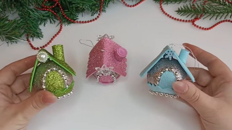 Подробнее о том, как сделать домик из ёлочного шарика, смотрите в видео ниже: