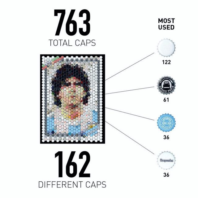 Французскому графическому дизайнеру удалось совместить свою любовь к пиву со страстью к искусству. Он создаёт мозаику из крышек от пивных бутылок, воссоздавая знаменитые картины, известных личностей и персонажей поп-культуры.