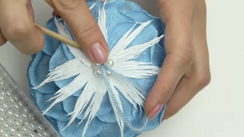 Начиная сверху внахлёст приклеивайте лепестки из бумаги.