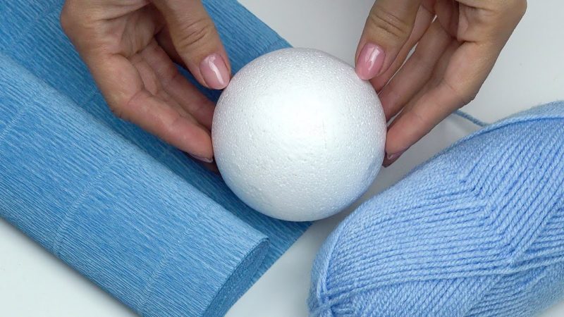 Очень интересную и необычную ёлочную игрушку можно сделать своими руками из пенопластового шарика и гофрированной бумаги. Минимум материалов, зато какой же потрясающий результат!