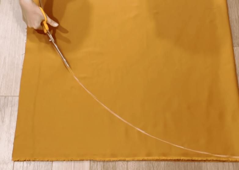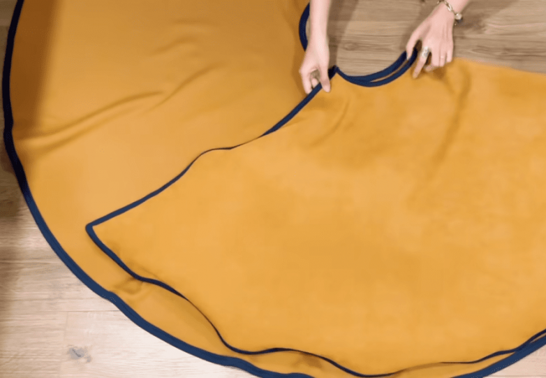 Разворачиваем ткань и в полученной круглой детали делаем продольный разрез по отмеченной линии. Выкройка готова!