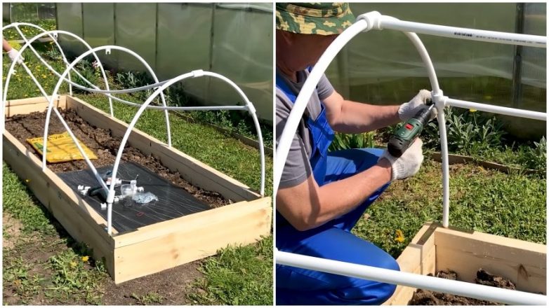 Парник с откидным верхом из остатков доски и пластиковых труб