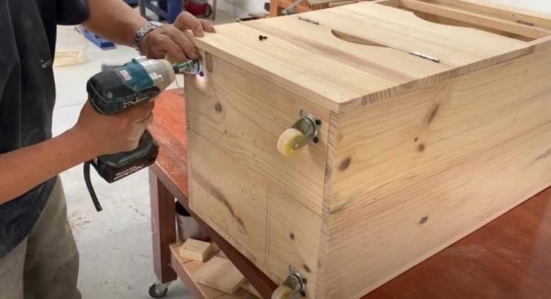 К основанию прикручиваем мебельные колесики.