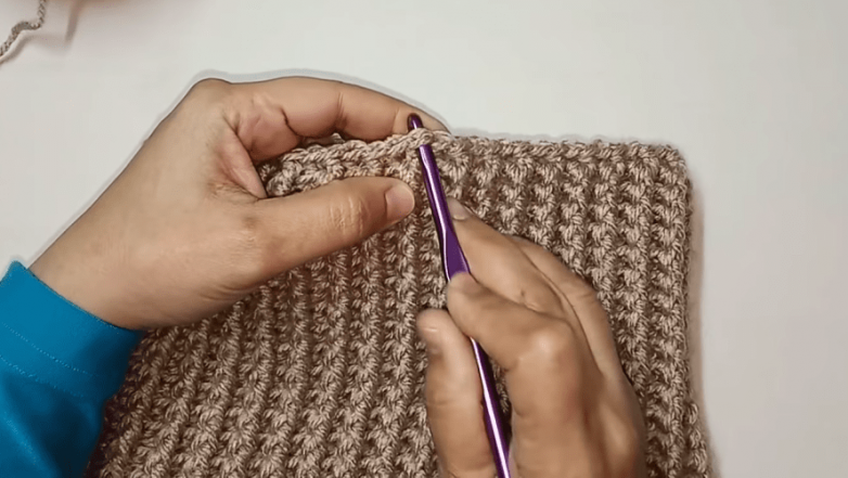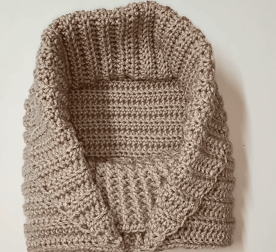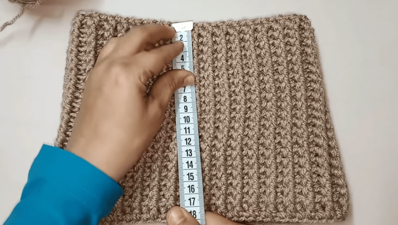 Начиная с 17 ряда вяжем прямое полотно тем же способом без каких-либо прибавок и убавлений вплоть до конца вязания. Здесь ориентиром станет желаемая высота капюшона.