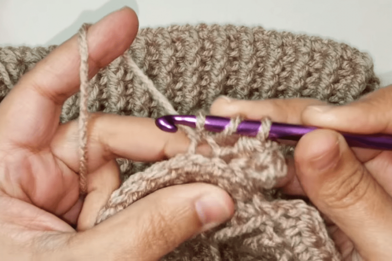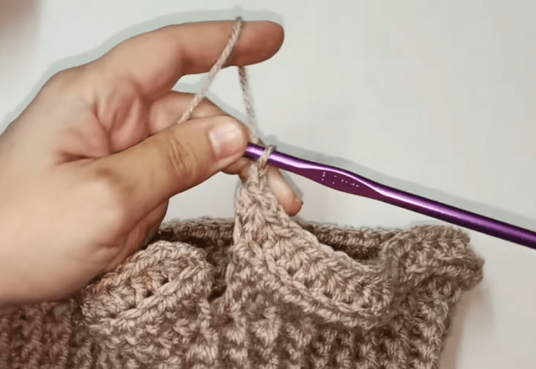 Основанием для нового ССН является ССН предыдущего ряда. При этом через раз крючок заводится то перед связанным полотном под ССН предыдущего ряда, то, напротив, позади полотна, но перед ССН предыдущего ряда. Столбики предыдущего ряда для удобства можно охарактеризовать как выпуклые и вогнутые.
