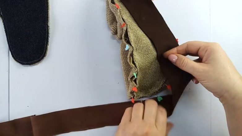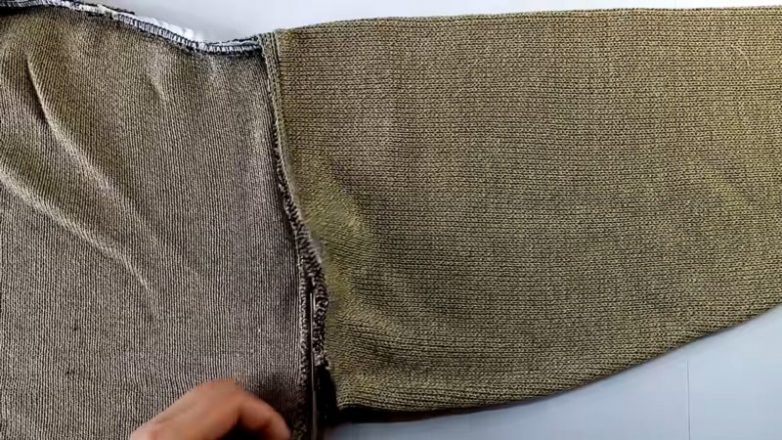 Перенесите драповую заготовку на свитер, вырежьте. Сшейте вместе драп и свитер на машинке.