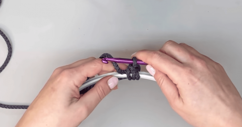 Дополнительным плюсом станет то, что объемная вещь внушительного размера будет расти буквально на глазах, и все это благодаря использованию шнура и толстого крючка.