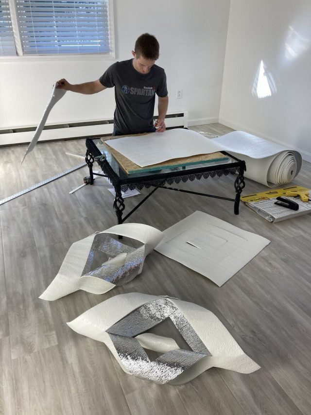 Материал, из которого они её сделали. 50 футов (15 м) светоотражающей пеноизоляции.