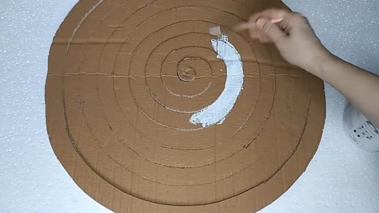 Сначала на картоне нужно нарисовать круги с диаметрами на 3 см больше, чем предыдущий круг.