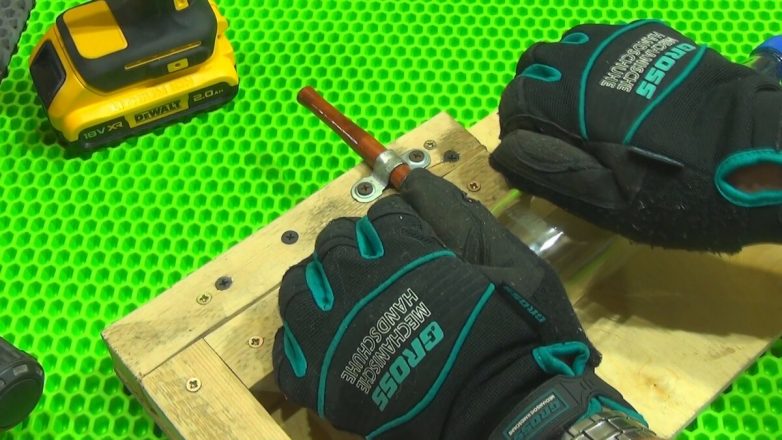 Сверлим отверстие в доске под кабель и канат.