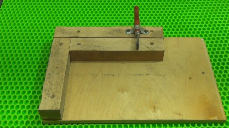 Резать бутылки будем на вот таком самодельном приспособлении. Три бруска фанера и стеклорез, вот и все приспособление.