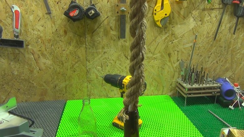 Вставляем кабель с патроном во внутрь бутылки.