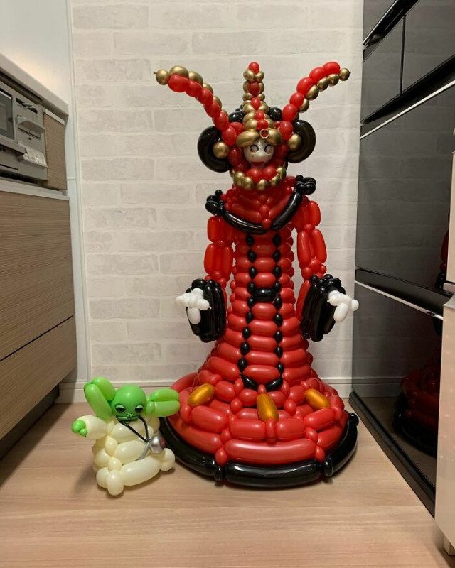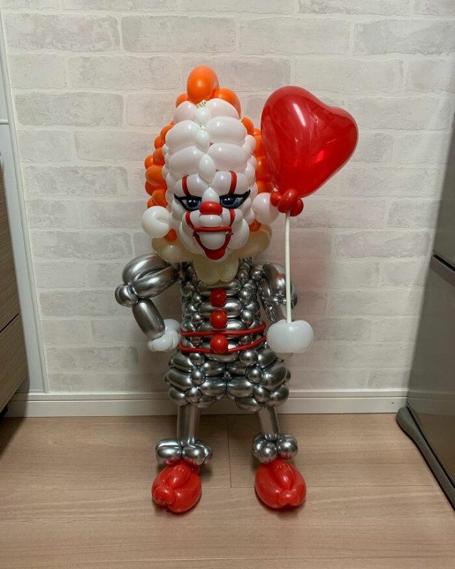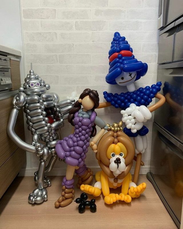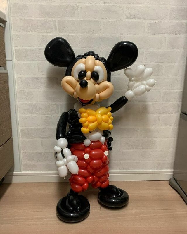 Овладев искусством скручивания воздушных шаров, он теперь превращает их в надувные скульптуры в виде популярных персонажей фильмов и мультфильмов.