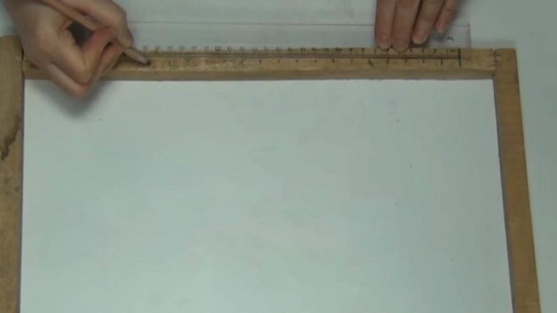 Четыре доски длиной 39-40 см сколотите между собой. Сделайте с помощью линейки и карандаша отметки 1,5 см на всех досках.
