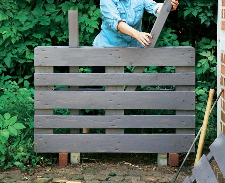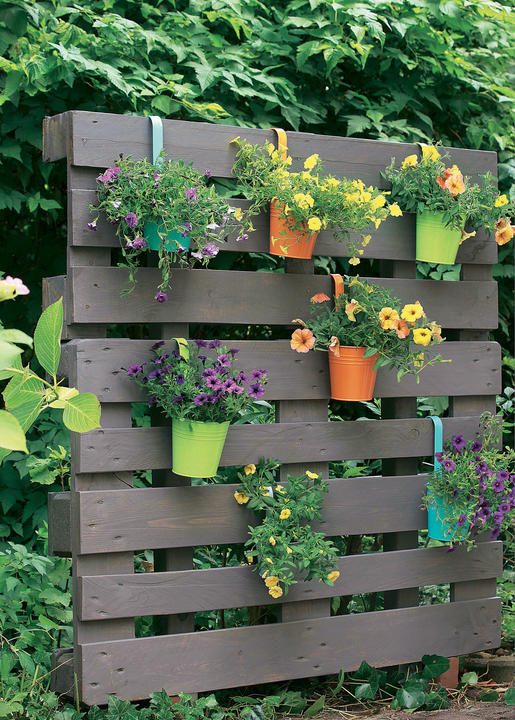 Либо просто с вьющимися растениями или травами. А в свободное пространство между досками можно еще установить горшки для растений.