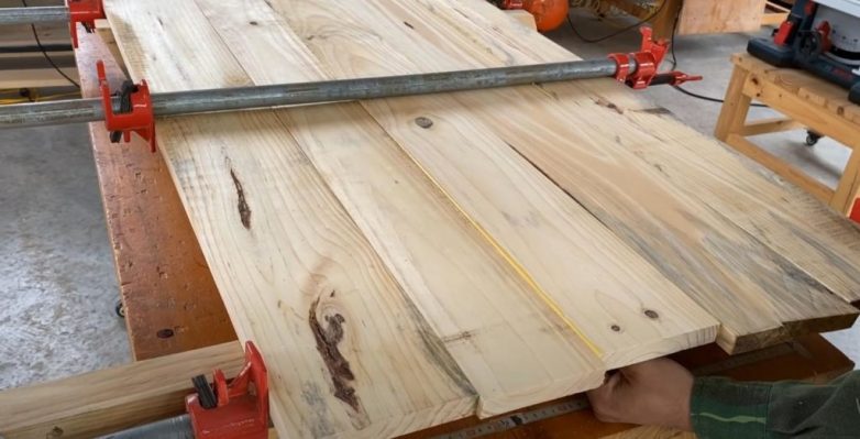 Из досок склеиваем щит.