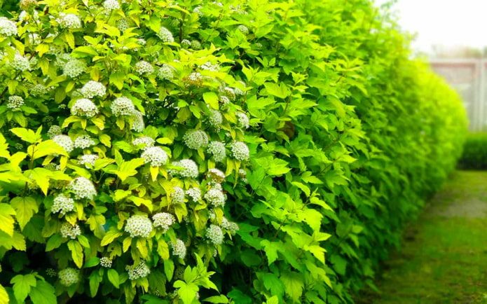 Наиболее подходящие растения для формирования зелёного забора – кустарники. Благородные культуры в виде можжевельника, туи и самшита смотрятся богаче, но растут медленней и стоят дороже. Выбирайте иву, акацию или пузыреплодник, чтобы любоваться живописным ограждением, не ожидая несколько лет.