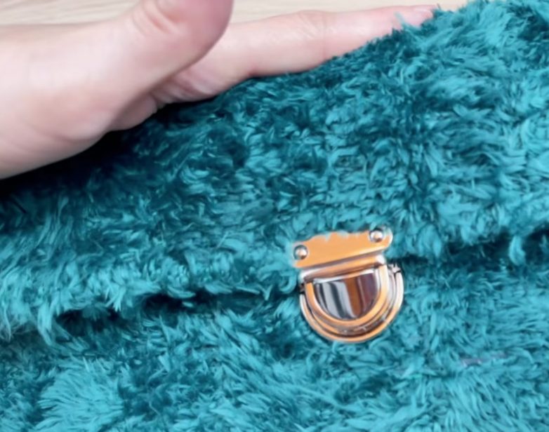 Закрепите на сумке застежку и пришейте петли для ручки.