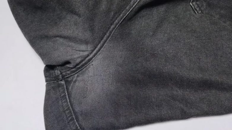 Последний штрих для прочности — прошейте простым стежком поверх клеевой ткани, чтобы дополнительно зафиксировать её на джинсах.