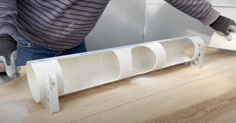 На следующем этапе устанавливаем по бокам пластиковой трубы заглушки.