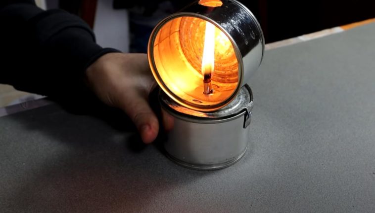 Из пустых консервных банок можно сделать своими руками настольный светильник, который работает на растительном масле.