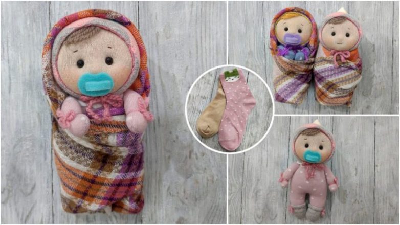 Очаровательные, милейшие детишки — замечательная игрушка, которую хочется понянчить даже взрослому! Сшить её очень легко из обычных носков и наполнителя, чтобы игрушечка была мягкая и приятная на ощупь.