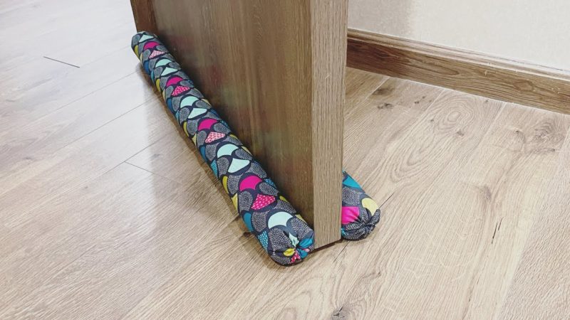 Ограничитель готов! Вложите его под дверь. Конструкция максимально простая: это подкладка с двумя узкими длинными подушками по обеим сторонам двери. За счёт этого, в комнате становится тихо и тепло, нет сквозняков и посторонних запахов.