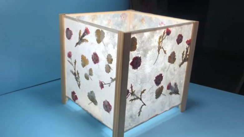 Вы только посмотрите на готовую работу! Это потрясающая лампа с очень мягким, рассеянным светом и невероятно красивым декором — заснеженными цветами!