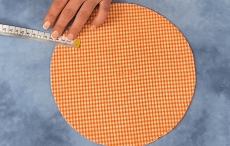Выворачиваем и хорошо расправляем заготовку, а затем отутюживаем. Складываем заготовку вчетверо, чтобы найти центр круга и помечаем его. От края откладываем к центру расстояние в 3.5 см и прочерчиваем круг удобным способом.