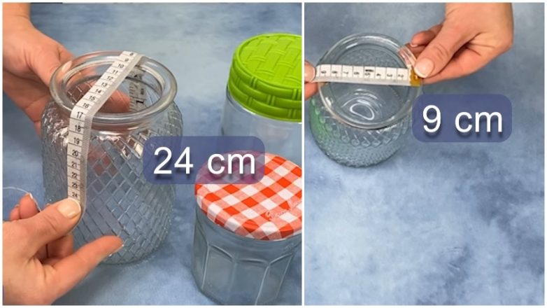 Делаем необходимые замеры. Отмеряем через верх расстояние до середины банки и определяем ширину горлышка.