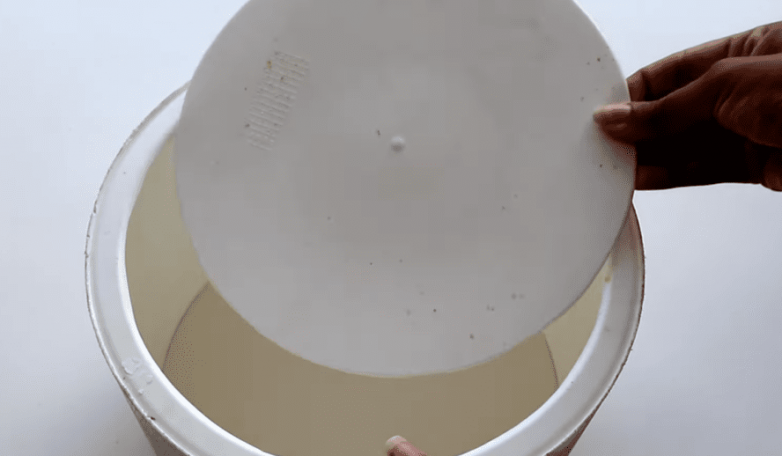 Поверхность ведра полностью обвита. Чтобы сделать ее более привлекательной, решено применить частичное окрашивание. Ограничителем стала проложенная поперек в нужном месте малярная лента. После окрашивания нужно только подождать, пока короб полностью высохнет.