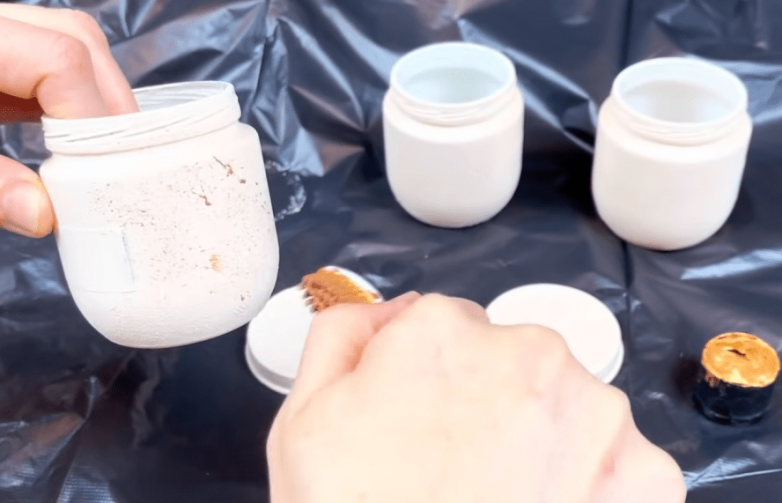 После обезжириваем баночки и крышки под них, а затем покрываем акриловой грунтовкой и даем высохнуть.