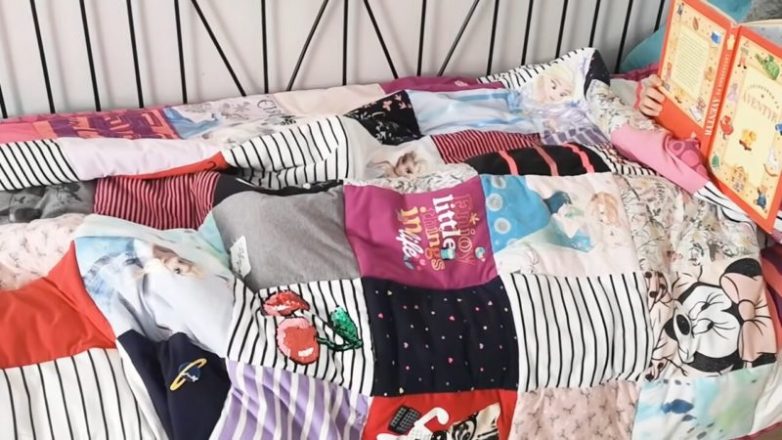 Памятную вещь можно сшить из, казалось бы, таких ненужных материалов, как ставшие маленькими вещи. Необязательно делать такую вещь из детских вещей — подойдут абсолютно любые вещи!