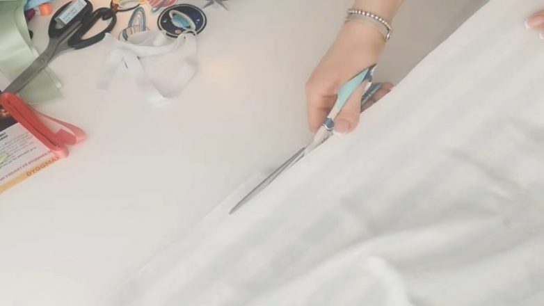 Пришейте два прямоугольника друг к другу с помощью полоски не тянущейся ткани.