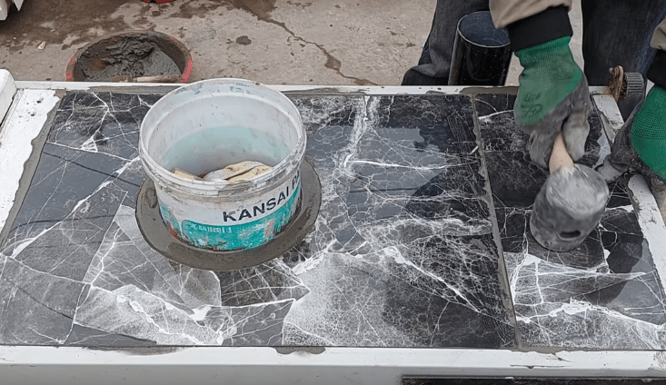Верх плиты можно закрыть керамогранитной плитой, уложив ее на слой цемента.