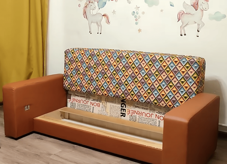 Дальше остается лишь вернуть ранее снятый крепеж на места и собрать диван в обратной последовательности.