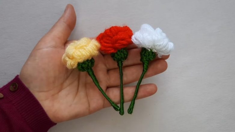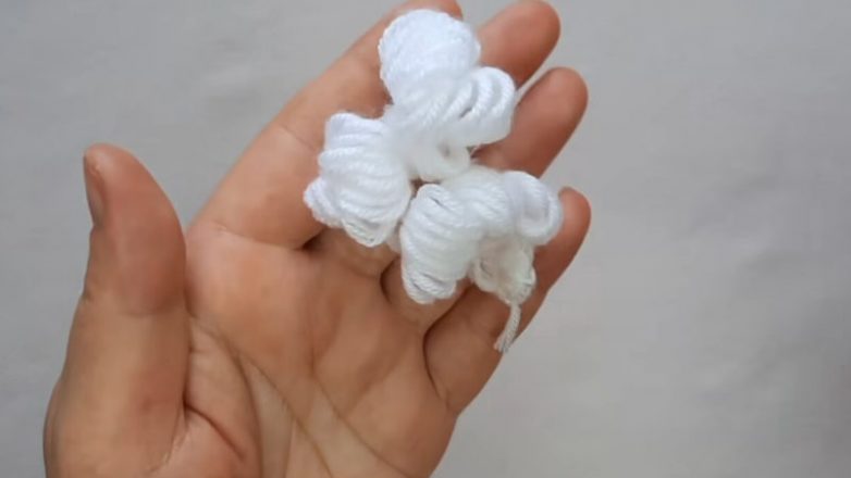 Готово! Чудесные цветы из пряжи для декора, которые были сделаны с помощью гребня.
