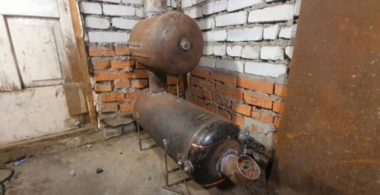 Отопительная печь для гаража из двух газовых баллонов