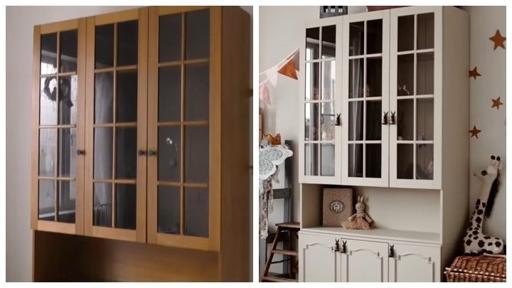 Особой изюминкой обновлённого шкафа автор проекта сделала ручки: на полках предполагалось хранить игрушки, поэтому было решено установить ручки в виде фигурок животных. Поскольку готовая фурнитура стоила дорого, пришлось делать её самостоятельно. Для этого подошли кухонные лопатки-зайчики по очень бюджетной цене.