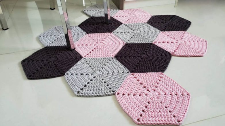 Роскошный коврик из шестиугольников готов украшать дом!
