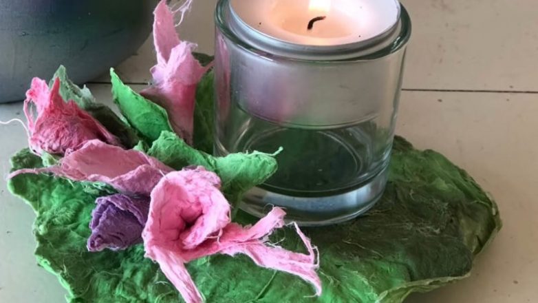 Из таких бутонов и листьев можно собрать интересное панно (основа сделана из картона + мешковины).