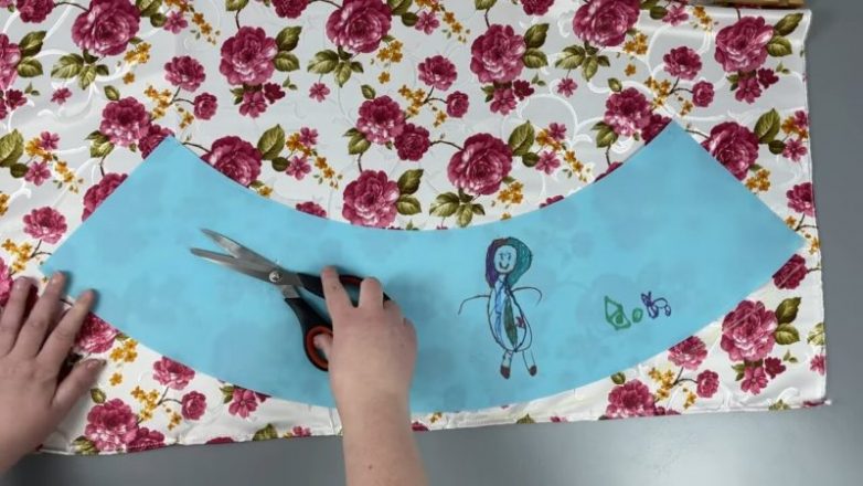 И перенесла выкройку на новую ткань — штору. Вырезала с запасом по краям 1,5 см.